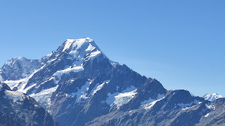 Маунт Кук, най-високият връх на Нова Зеландия, гледан от най-близкото място, което стигнахме спрямо него. Върхът е с постоянни ледници от всички страни и е бил тренировъчното място за сър Едмънт Хилари.